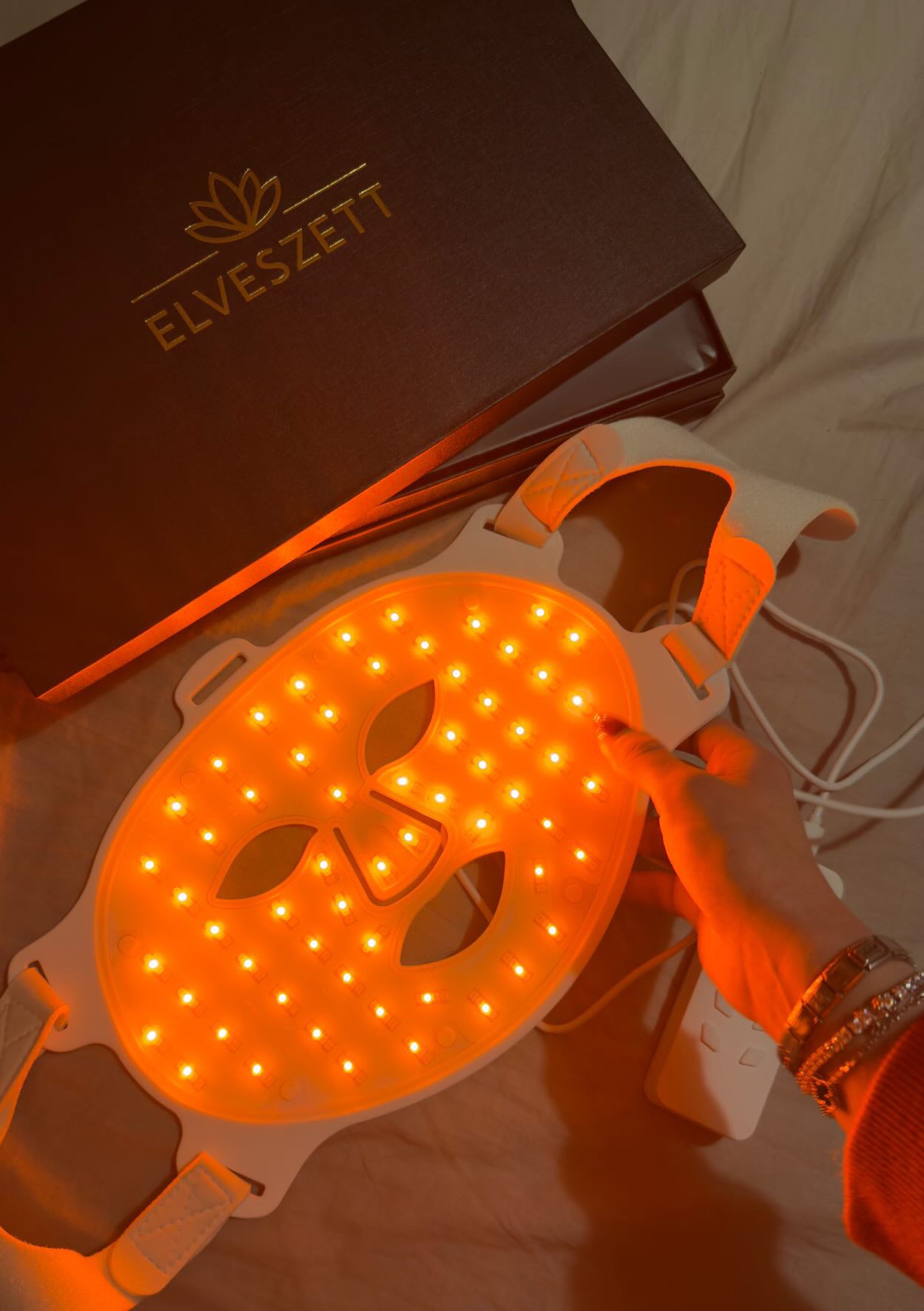 ✨ Червената светлина (630 nm) подпомага стегнатостта и свежия вид.